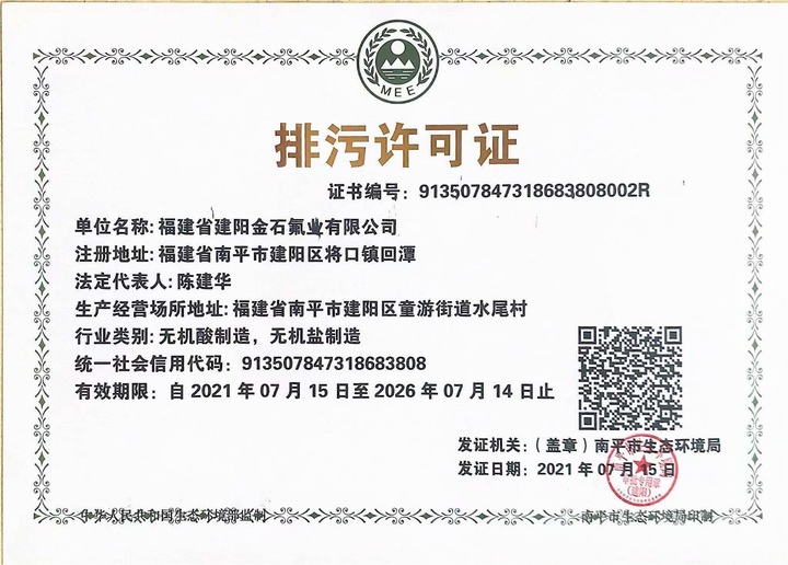 福建省建陽金石氟業有限公司主要從事氟化工產品無水氟化氫、無機氟鹽,以及電解氟等系列產品的生產銷售,是集螢石開采、氟化工深加工為一體的綜合企業。主要產品、規模:年產制酸級螢石粉5萬噸、無水氟化氫4萬噸、試劑級氫氟酸2萬噸、氟化氫銨(氟化銨)1萬噸、氟碳表面活性劑30噸。
